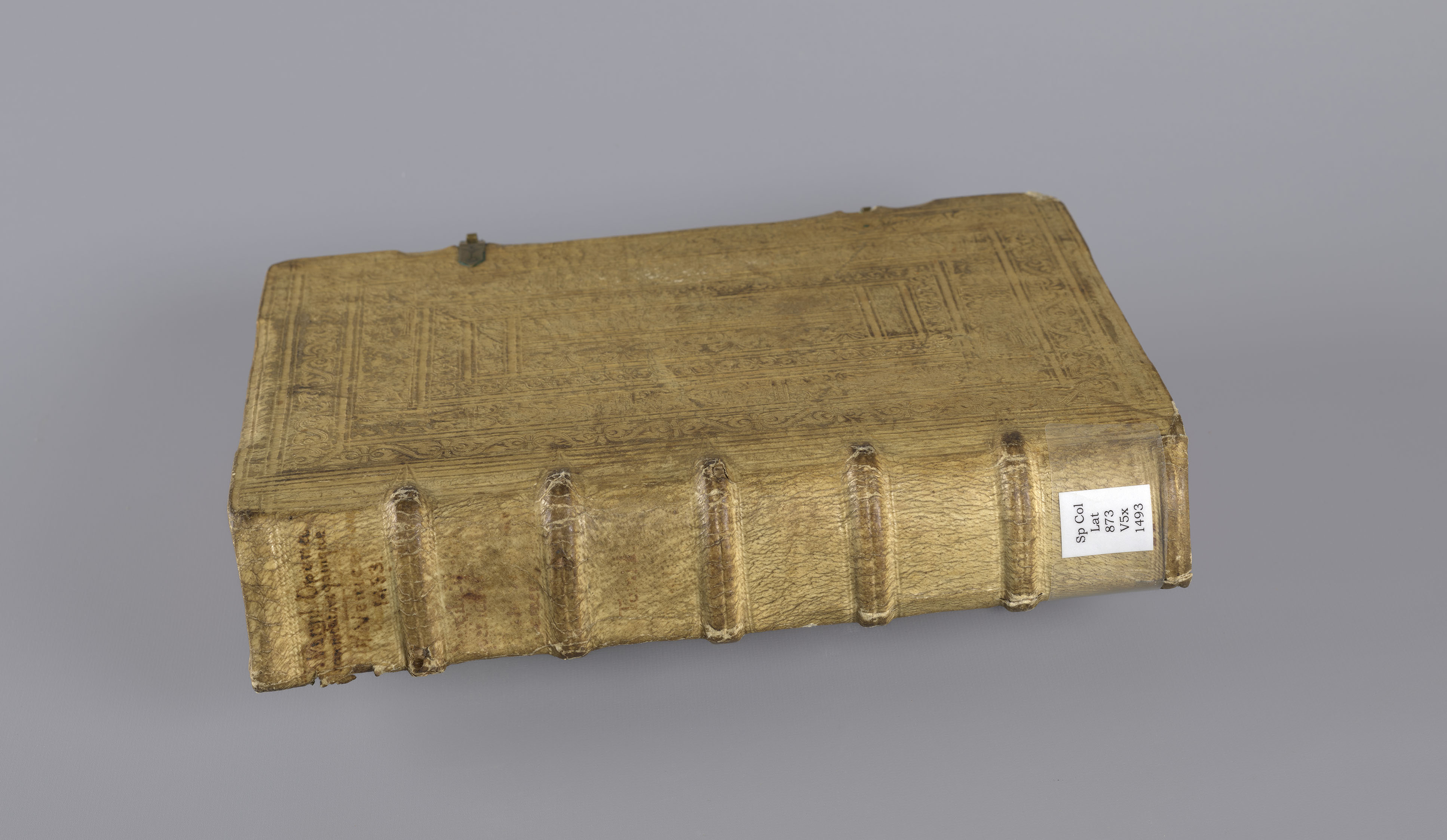 Vergilius cum c?mentariis quinque videlicet: Seruii, Landini, Ant. Mancinelli, Donati, Domitii. (M. Vegius’ Book XIII addition to the Aen. Also Priapeia and Catalecta.) / Colophon: Impressu Venetiis per Bartolome? de Zanis de Portesio. . . . M.cccc.xciii. Stamped vellum with clasps. Very rare. Fol.