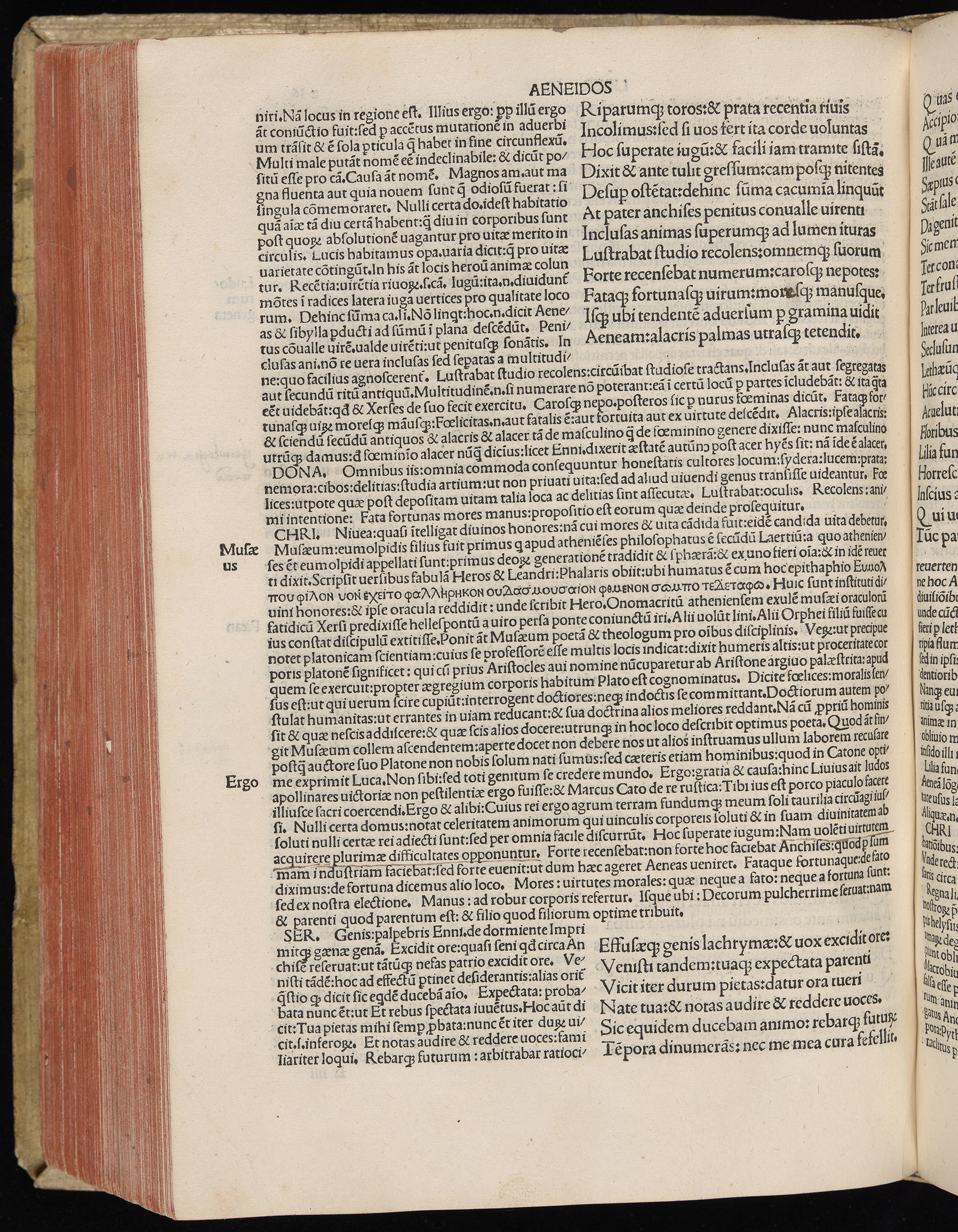 Vergilius cum c?mentariis quinque videlicet: Seruii, Landini, Ant. Mancinelli, Donati, Domitii. (M. Vegius’ Book XIII addition to the Aen. Also Priapeia and Catalecta.) / Colophon: Impressu Venetiis per Bartolome? de Zanis de Portesio. . . . M.cccc.xciii. Stamped vellum with clasps. Very rare. Fol.